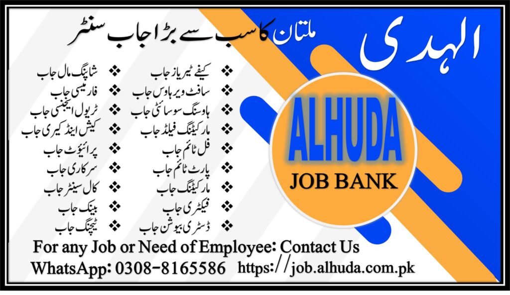 Marketing jobs in Multan are rapidly growing as businesses expand their reach and customer engagement. Alhuda Job Bank helps job seekers find reliable marketing positions by offering verified and professional job placements with reputable companies across the city.